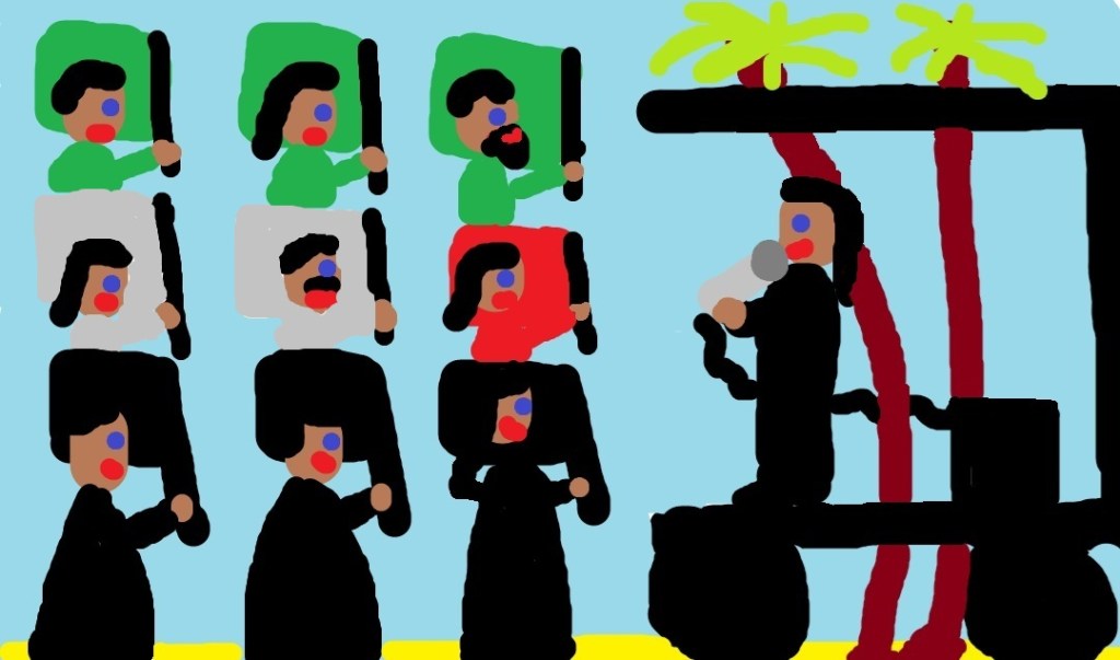 They agreed, and we did this during the remainder of the summer vacation and in the winter vacation of 2012 as well. Now remember, dear Palestinian, Illyrian, and Casa Latina Russki Dom Peace Dove comrades, we were only twelve or thirteen years old at that time. We were tall, healthy boys, but we were not fighters. We were really interested in politics and democracy. Comrades, what we had to witness! We were the fronters, who asked the people to sign the list. Behind us stood older, even taller, and stronger men. If people signed, no problem, we moved on. I remember, our escorts even got slightly antsy when women and voting-age girls wanted to sign. Sometimes, they snorted a bit, as if to say, was all that feminism really necessary? Yet if people did not want to sign, the second row began to let its muscles play. On several occasions, we heard them say. “Oh, come on, you know Mursi is a fundamentalist and a traitor to Egypt. He won’t even get along with the Saudis and the Emirates. Egypt will end up in the gutter.” And while they said that, they stepped up to the recalcitrants, pushed against them and made threatening gestures. For that reason, many of them signed.