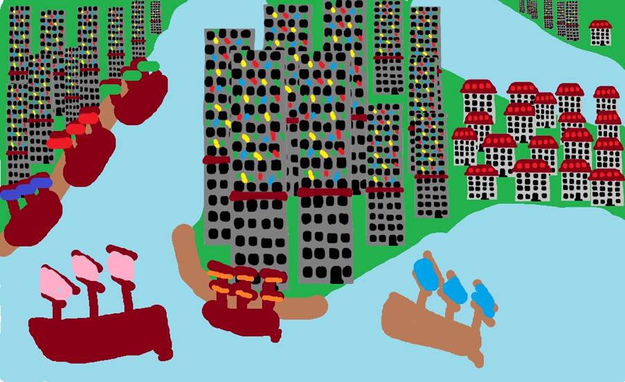“’The train station?’ Of course, although there might be one joint station Aimeran-Guémeron. ‘The post-office?’ No problem, it would be in the central square bakery share point, like before . ‘The cultural centre?’ Yes, the five villages would all contribute to the projects and conduct necessary material and hierarchy checks so that the fascos could not appropriate them. ‘The policlinic?’ Of course. There might even be out-branches in all five villages, with about three beds each, and a mixed doctor – nurse – support brigade each with the role of foreman rotating between them every day as in the rest of the economy, as well as the central policlinic with 20 beds and three mixed brigades. And in case of emergencies in one area, some of the other five brigades might deploy there.