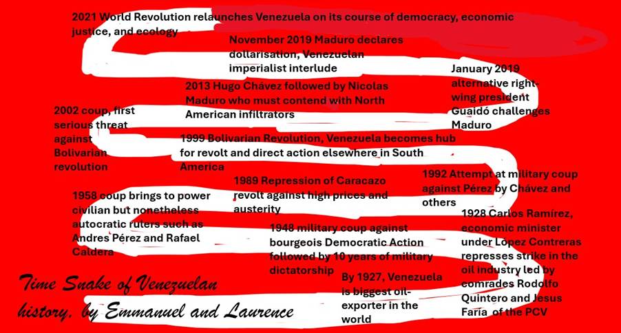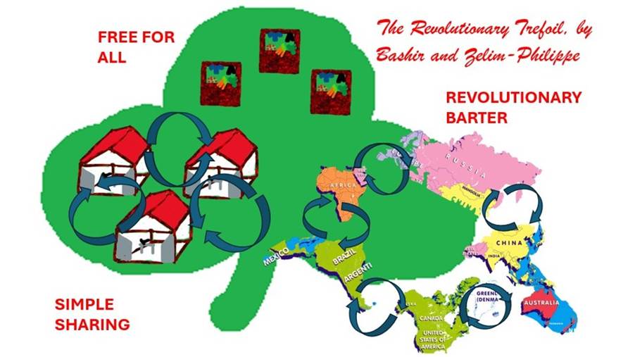 “Their product lines are bad enough. Dodgy processed foods. Synthetic fertilisers and pesticides. Counter-revolutionary, weaponisable smart phones, even some pretending to be intranet phones. Pharmaceutical medicine, including nanobotted vaccines, using spike proteins and synthetic mRNA and other toxic or addictive by-products. Ships, boats, ice breakers, and maybe even planes, even solar and wind propelled revolutionary ones, as well as means of production such as robotised conveyor belts. Steel, and other metals imminently useful for the production of weapons. Finally, oil and gas, where the revolution has already transitised to completely renewable block energy works, consisting of solar panels, small windmills, small water turbines, and rubbish incinerators for non-recyclable rubbish. Yet these comrades have also pretended to be just rank and file members of rotating management brigades in their half-open, half-clandestine workshops, where you as the worker never know whether by misfortune you are producing for money or rather for crypto or tokens and may have to buy all you needed from underground outfits. This while in the revolution you would get everything for free as part of the economic circuit. You would receive all your basics such as food, clothes, household goods, furniture, toys, phones, computers, robots and other devices either for free, by simple sharing at a share point, by revolutionary barter, by discussion with your neighbourhood assembly or trade union cell directly from the producing self-managed workshop, or in difficult situations, by voucher. You would also get your home renovated, repaired or even built new by self-managed construction enterprises and brigades. And of course, like everybody else you would be entitled to use public transport for free, drive a functional vehicle if approved by the village assembly, send your children to school, training, or university for free, receive treatment at a self-managed policlinic for free, and so on. So, we wondered, since 99% of the economy was already functioning according to the free principle as measured by the free gauge, why did we need all these clandestine workshops, or at least clandestine sections working for money?