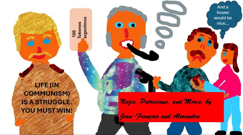 Life in Communism 2.1. Revolutionary Travel, by Carla O’Gallchobhair. It is February-March of Year 19 of the World Revolution (where 2021 is Year 0). Comrade Vicky, Peter Gar’s long-missed daughter is in our cooperative Illyria in Yvelines with her grandson Vitya to give what might at first sight seem to be a boring presentation of bourgeois, business, and elite travel under capitalism as compared to the much more fulfilling experience of revolutionary travel in Communism. Yet Vicky is not only a travel agent, who has done a thorough study of all new travel forms possible thanks to revolutionary science. She is also a buffalohuman, who can switch magically from a human to a buffalo and if need be to a grasshopper incarnation. At the same time, ex-U.S. underground capitalists and fasco revanchists have still not given up their pipe dream of returning capitalism and imperialism. Their latest hope is Gerardo Trilei, an Argentinian underground oligarch who has declared himself president and has a programme for returning money or at least money substitutes, harmful EMR-run internet, exploitation of humans, plants, and animals, and renewed surveillance from satellite not only in Argentina but all over Latin America. Two Illyrian research brigades accompanied by Vicky and Vitya happen to be on their way to South America, and may have a chance to do something to thwart Trilei’s plot.